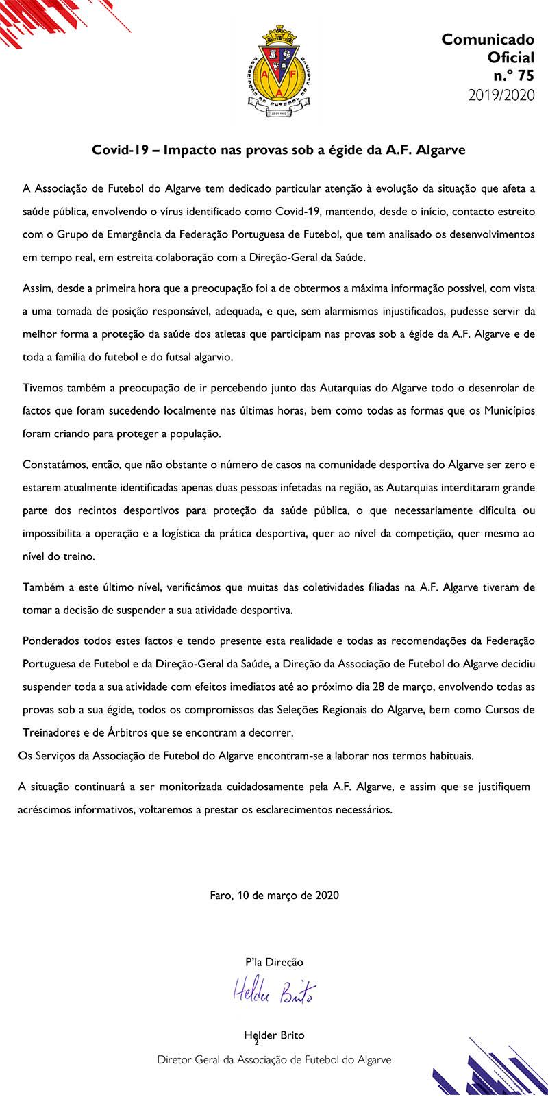 Covid-19 - Impacto nas provas sob a égide da A.F. Algarve
