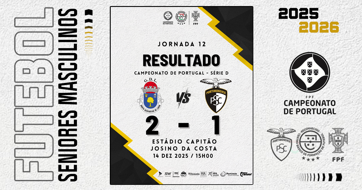 Os Seniores do Portimonense foram derrotados por duas bolas a uma na deslocação ao terreno do Grupo Desportivo de Lagoa, em partida da 12.ª jornada do Campeonato de Portugal – Série D, 1.ª Fase.