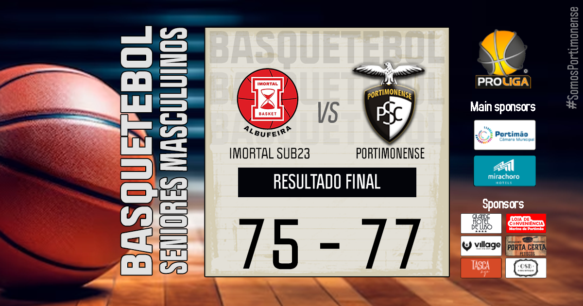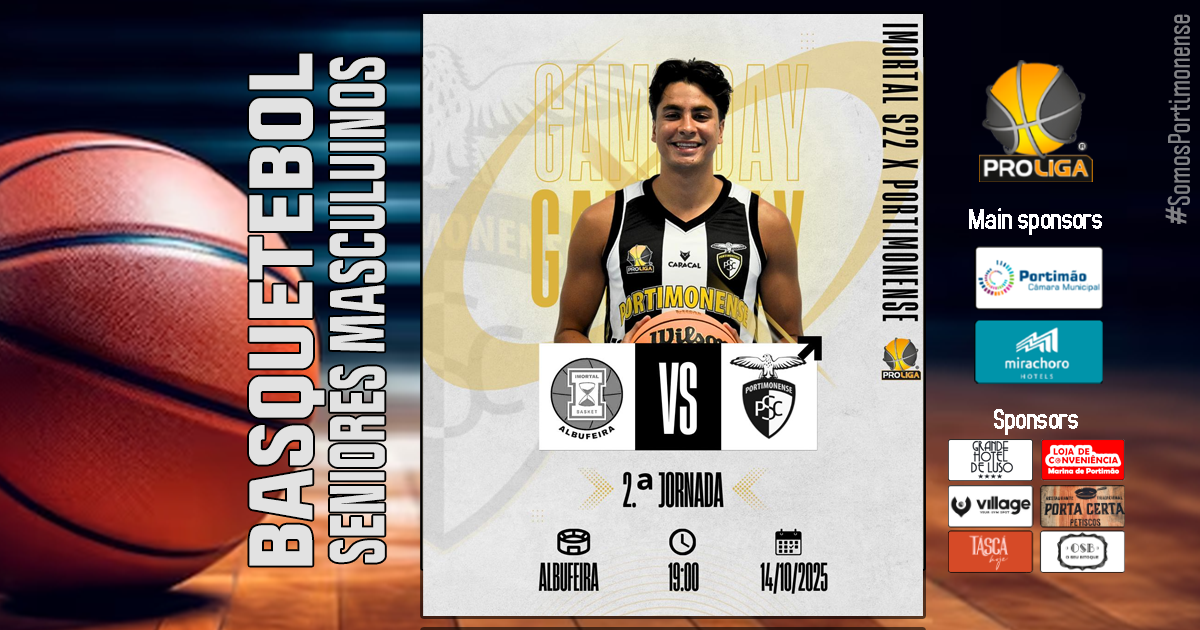 A equipa sénior masculina de basquetebol do Portimonense S.C. continua em grande na Proliga 2025/26, ao vencer esta terça-feira, 14 de outubro, o Imortal Sub23 por 75-77, no Pavilhão Desportivo de Albufeira, em jogo da 2.ª jornada da 1.ª Fase - Zona Sul.