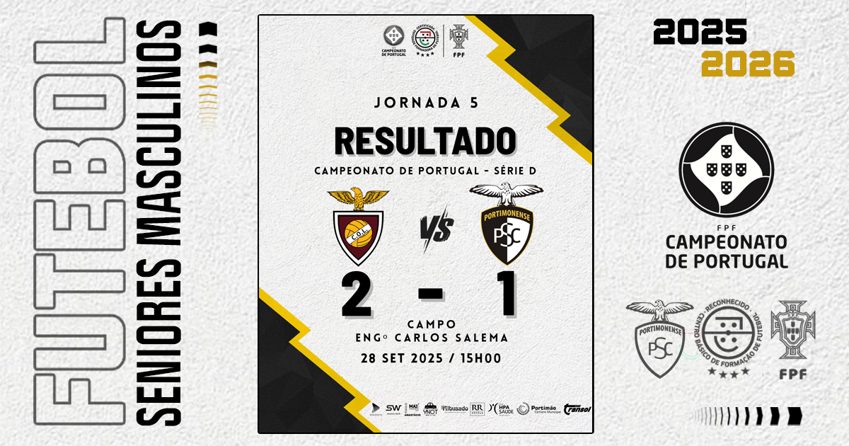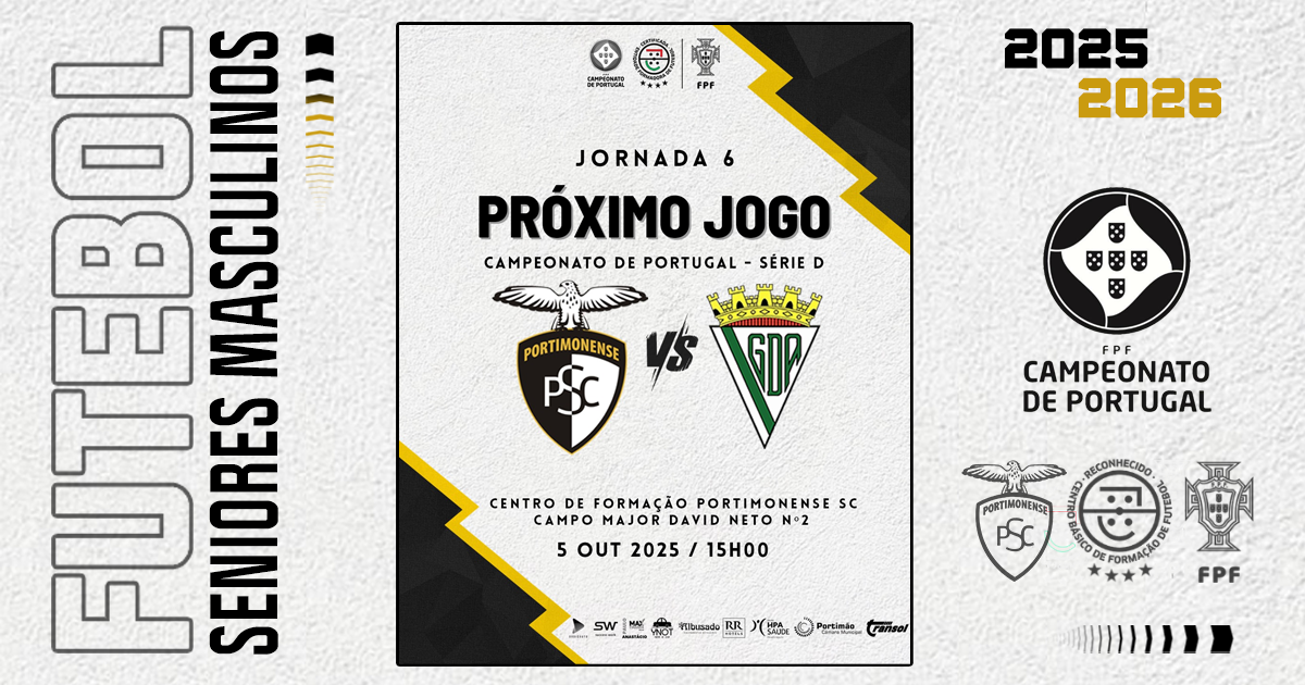 O jogo está agendado para as 15:00 horas no Centro de Formação do Portimonense Sporting Clube - Campo Major David Neto Nº2.