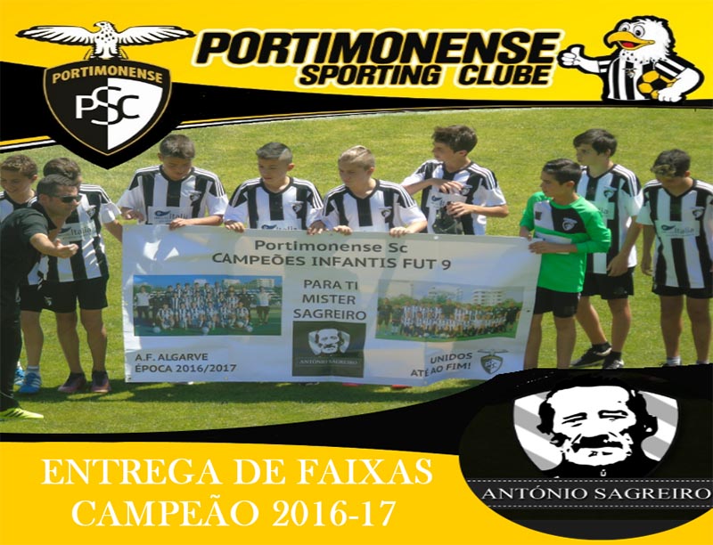 Após se terem sagrado campeões do Algarve a duas jornadas do final do campeonato, os Infantis de Futebol de 9 do Portimonense, receberam na tarde de sábado, dia 20 Maio. As medalhas e a respetiva taça foram entregues pelo responsável da formação do Clube, Tomé Mangas e Luis Reis, Vice Presidente do Concelho de Arbitragem da Associaçãode Futebol do Algarve, no final do encontro com o Imortal DC e que terminou com a vitória alvinegra por 7-0.