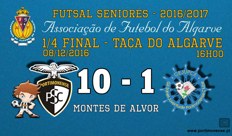 O Portimonense passou à meia final da Taça do Algarve em futsal, depois de bater esta tarde o GEJUPCE por 10-1, no Pavilhão dos Montes de Alvor.