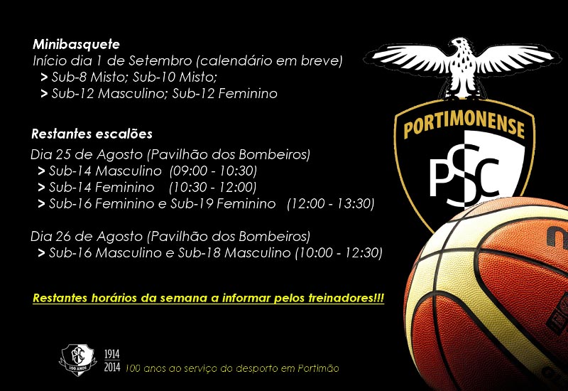 O Portimonense já tem todos os escalões de Basquetebol masculinos e femininos de sub 14, sub 16 e sub 18 e ainda os sub 19 femininos, em intenso trabalho de preparação para a época de 2014-2015.